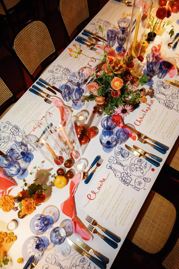 Geef je tafel extra flair met kleine decoratieve elementen zoals bloemen, groene takken, of zelfs persoonlijke naamkaartjes. Gebruik een handgemaakt schaaltje om petit fours in te presenteren of vul een kobaltblauw schaaltje met kleine hapjes. Het draait om de details!