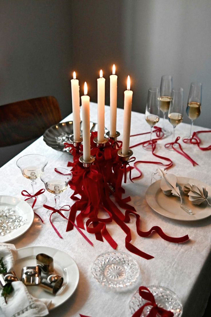 Speel met verschillende hoogtes om dynamiek te creëren. Gebruik keramiek kandelaars, etagères of stapelbare glazen om de tafel meer dimensie te geven. Voeg diepte toe met linnen servetten, placemats of een tafelkleed in een rijke textuur.