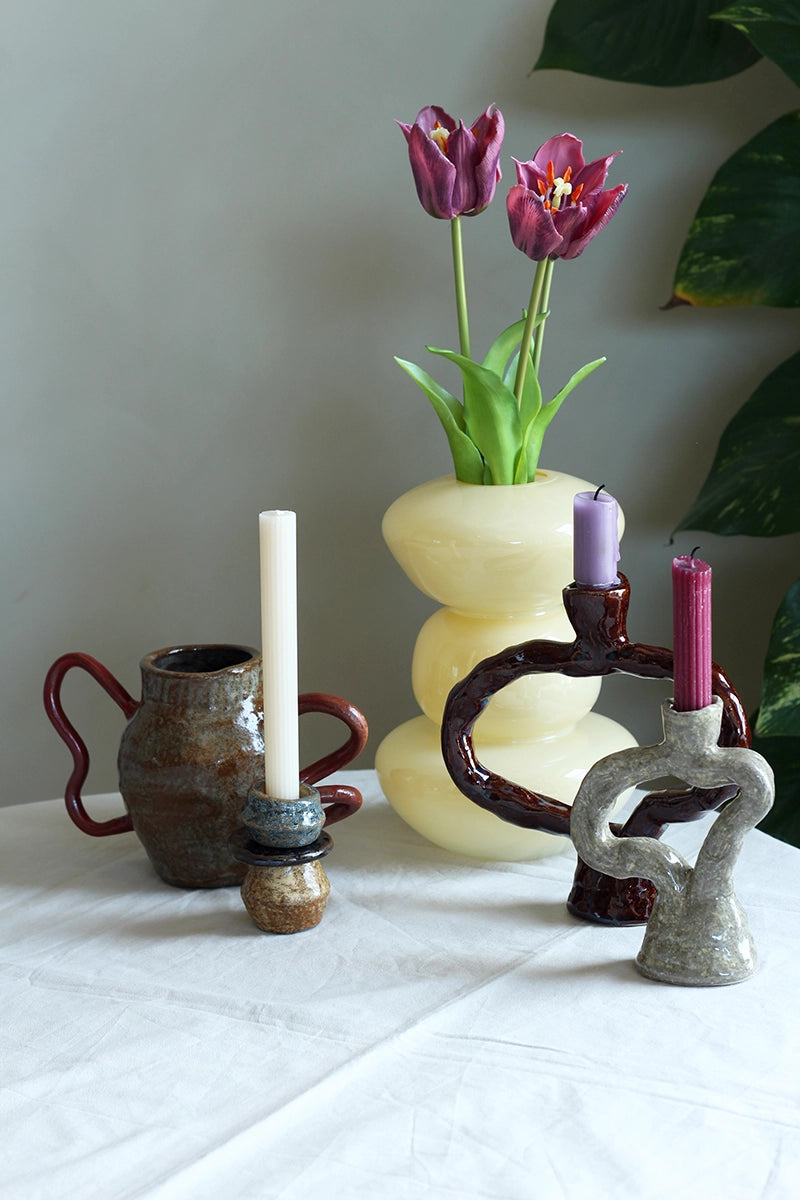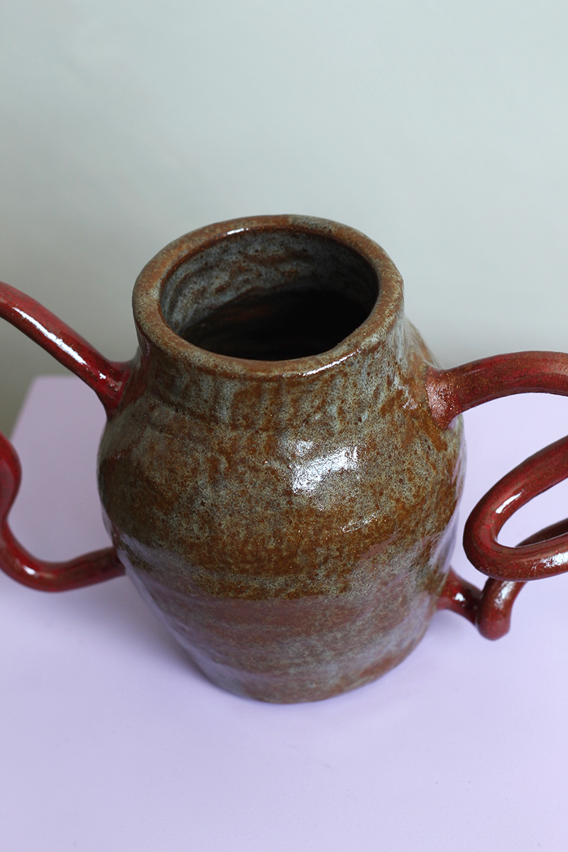 De vaas is met de hand gevormd en geglazuurd