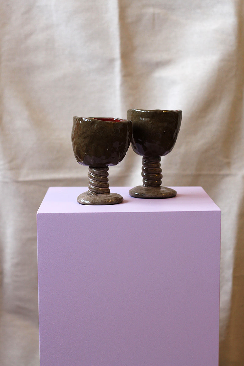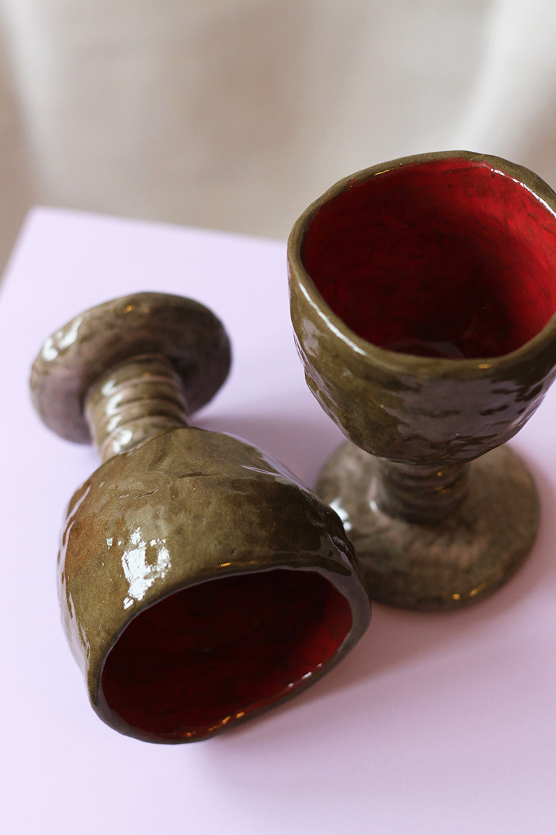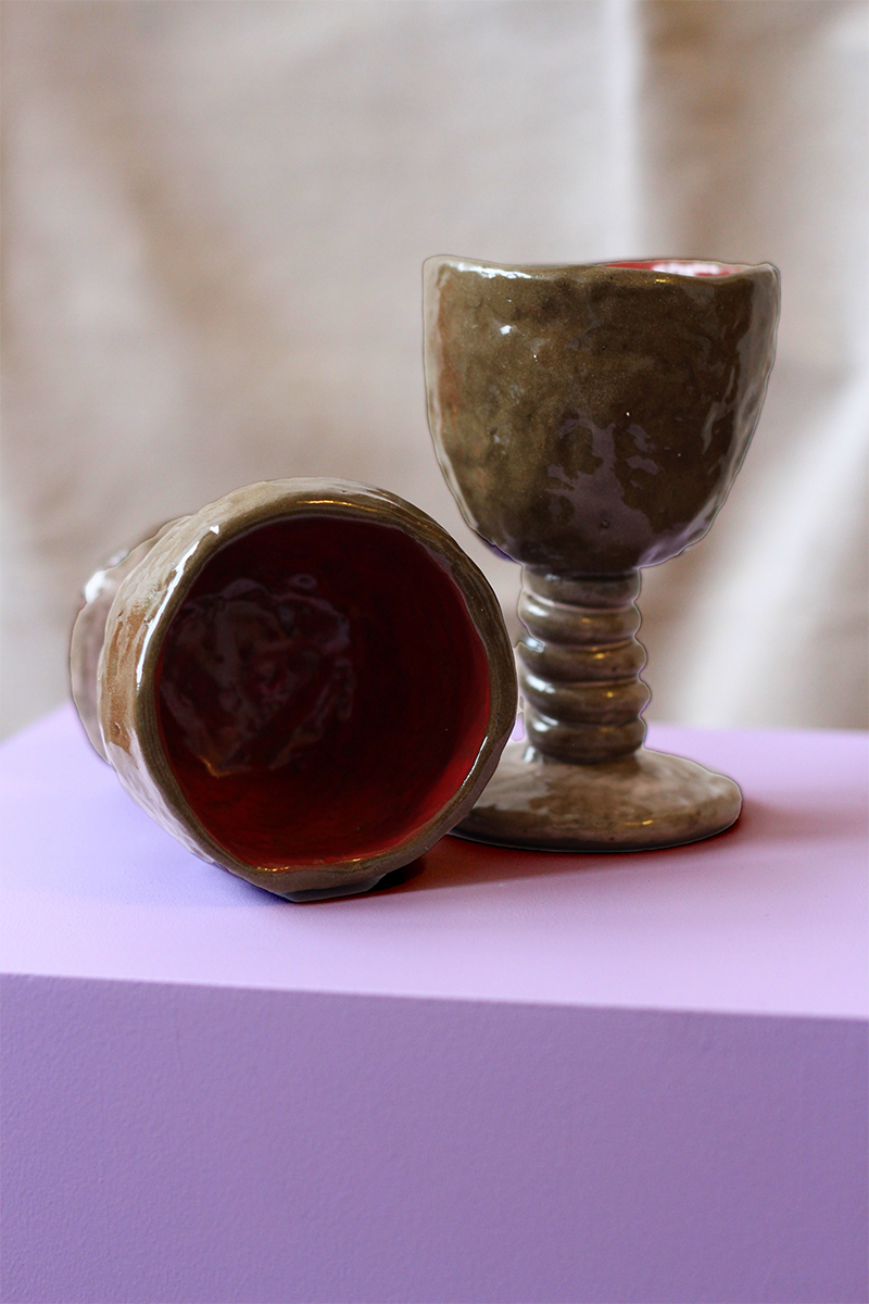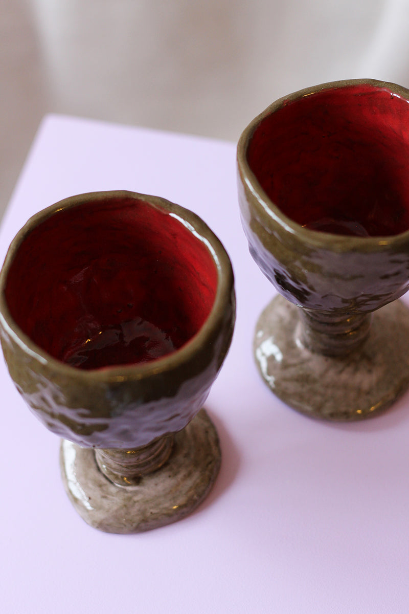Maak je dessert of wijnmoment extra bijzonder met deze prachtige kleine glazen. De rode binnenkant en melkroze pootjes stralen luxe en warmte uit. Perfect voor speciale gelegenheden of als opvallende aanvulling op je servies.