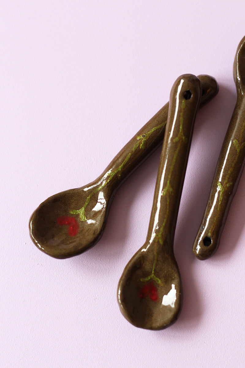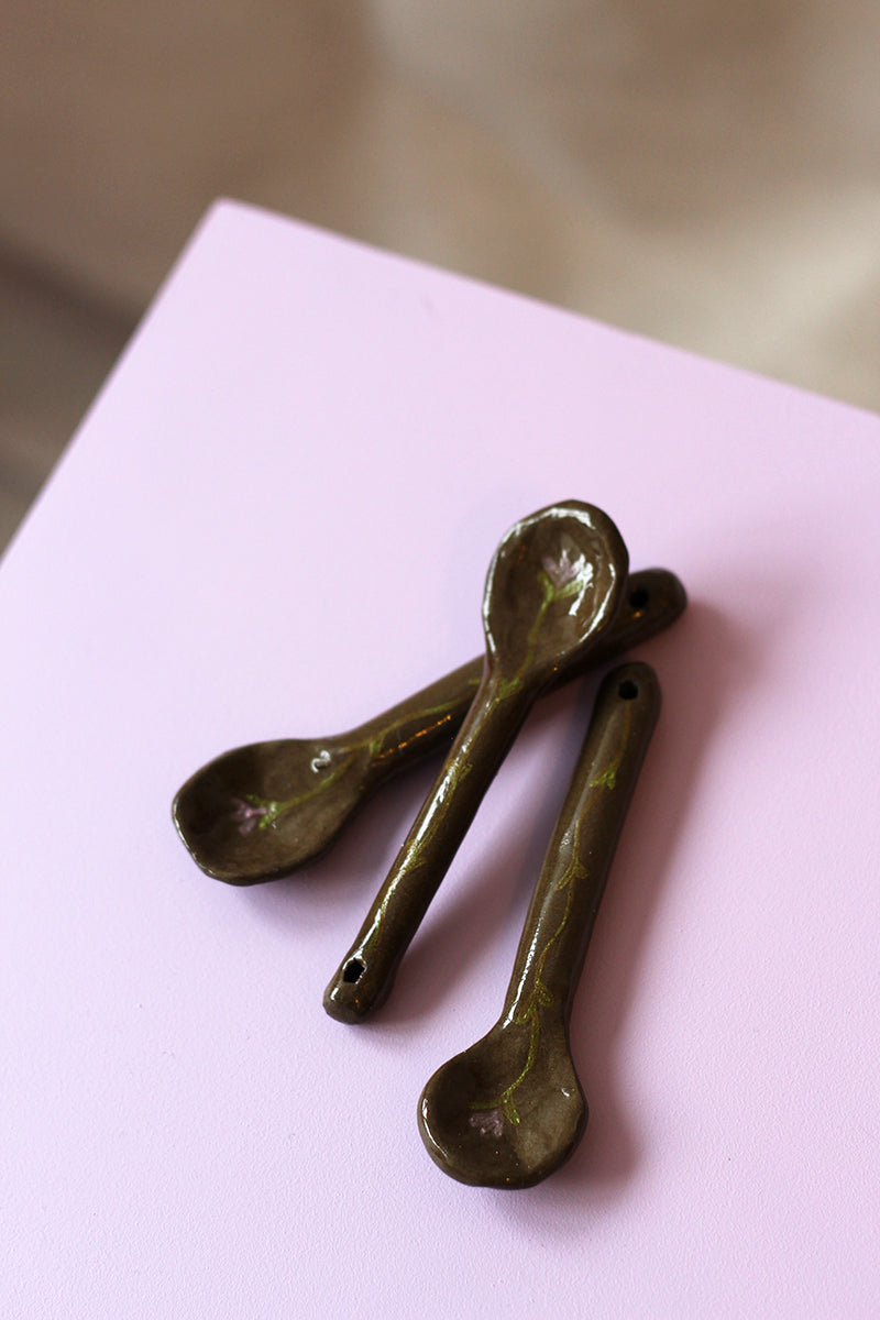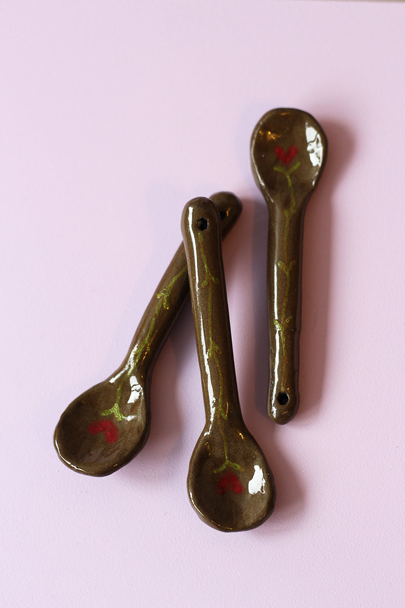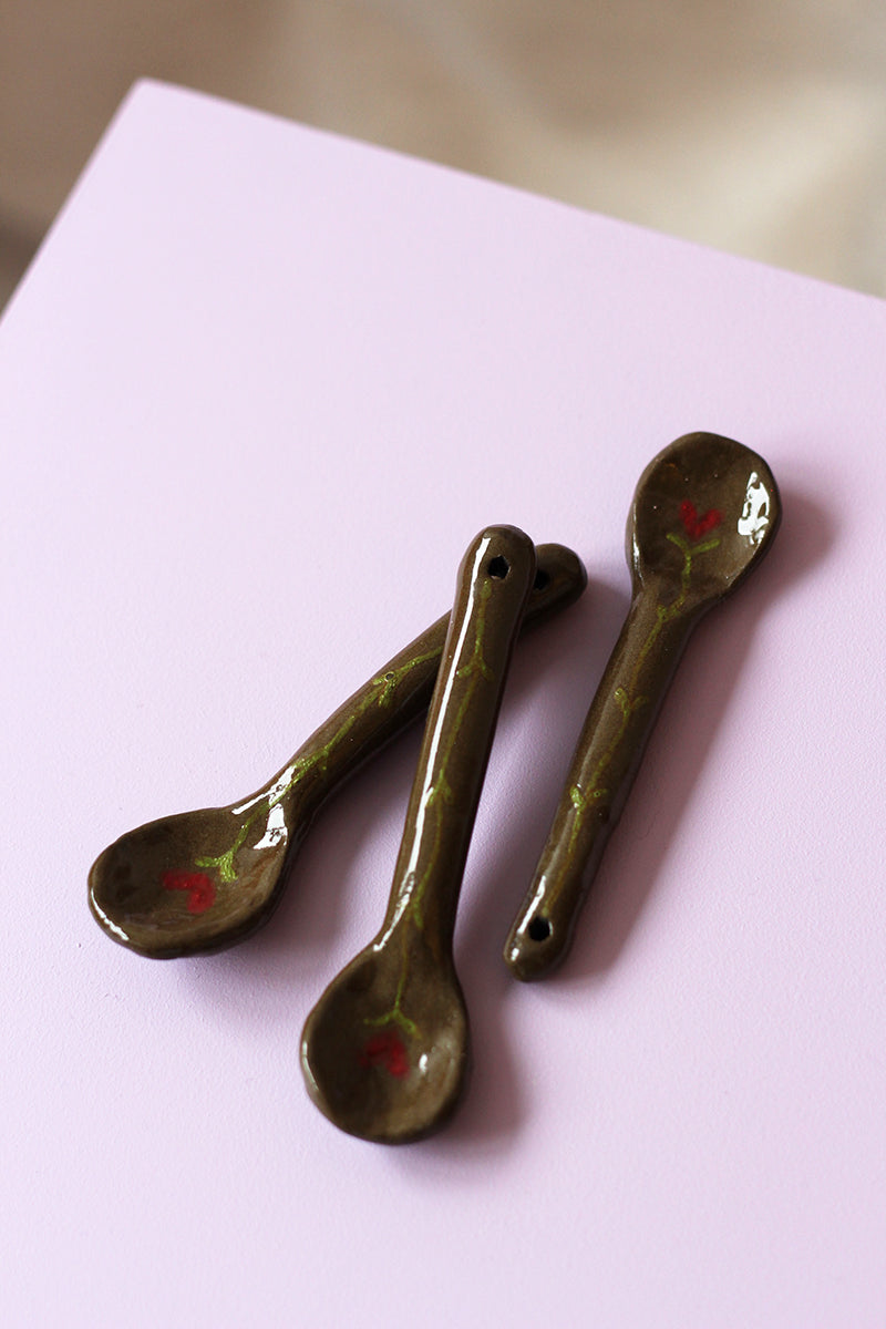 Deze handgemaakte lepeltjes zijn verkrijgbaar in twee speelse designs: een rood hartje of een lila bloemetje. Perfect te combineren met de Theekop met Groot Oor voor een uniek en vrolijk theemoment. Een kleine maar fijne toevoeging aan jouw keramiekcollectie.