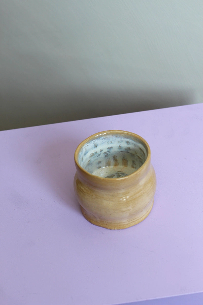 De mini vaas is met de hand gevormd en geglazuurd