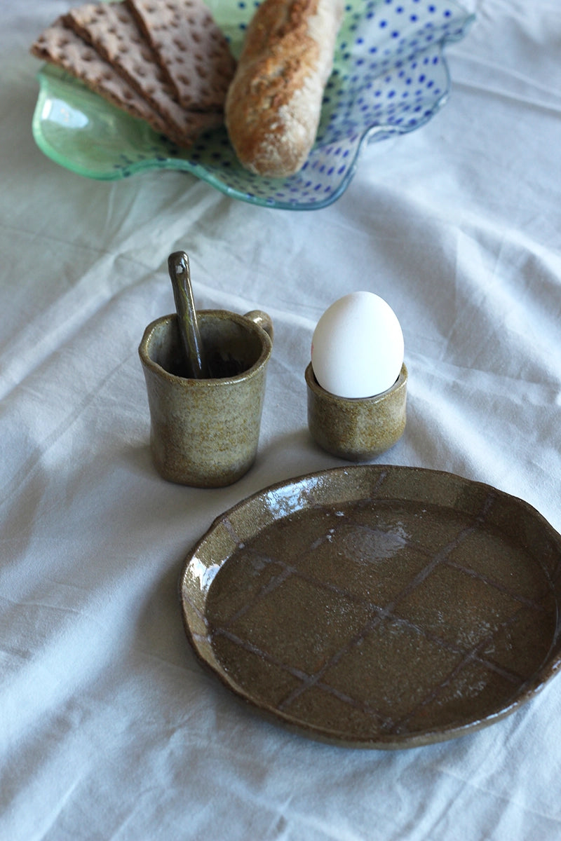 Spelenderwijs ontbijten doe je met deze vrolijke set van vier bordjes. De natuurlijke kleuren en het subtiele boter-kaas-en-eieren-patroon maken je ontbijttafel instant gezellig – en net een tikkie anders.