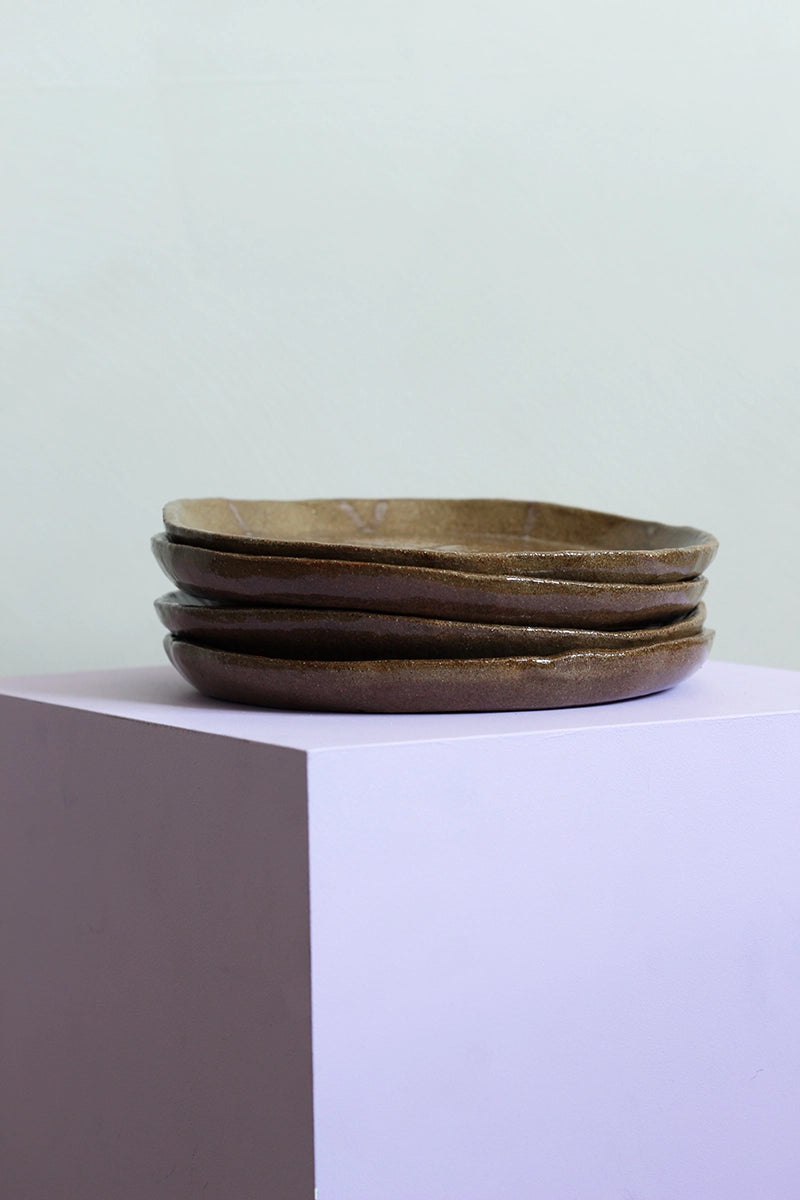 De borden zijn met de hand gevormd en geglazuurd