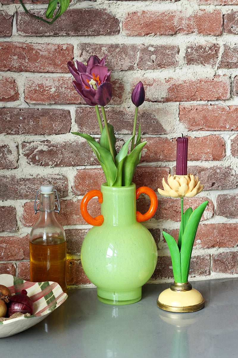 Met de Fiesta vaas van Present Time wordt jouw huis gegarandeerd een feestje! Alle vazen zijn handgemaakt en mondgeblazen, dus allemaal identiek. Voeg daar de hippe handgrepen, vrolijke kleuren en vorm aan toe en je hebt een feestje op een Present Time schaal. Zonder bloem is het misschien nog mooier, maar jij kiest. Het Fiesta glas van Present Time fleurt iedere plek in huis op!